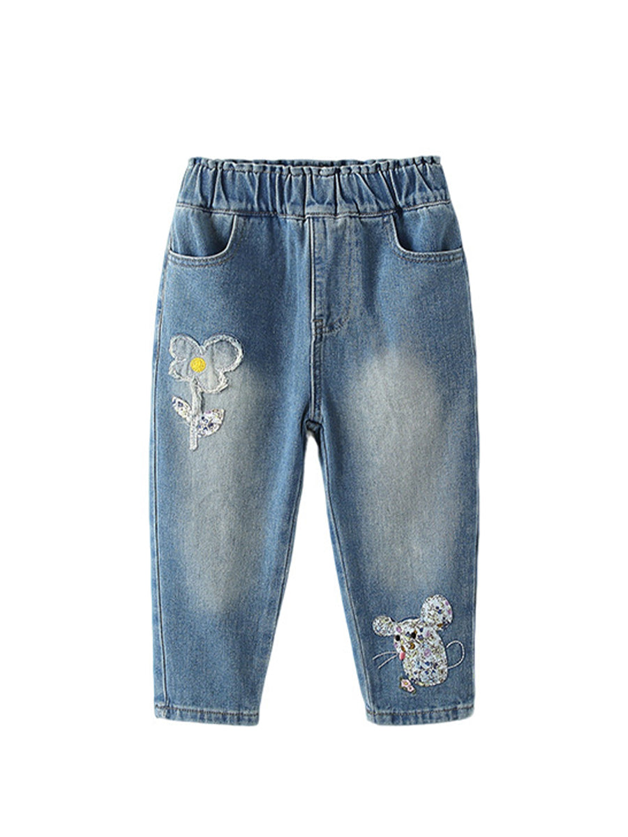 Add a little sparkle to her step with these adorable jeans! Featuring a sweet mouse...