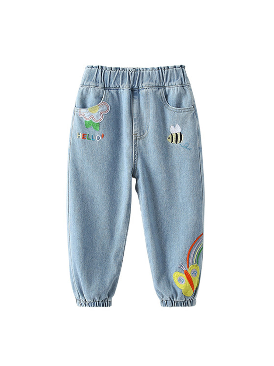 Say 'hello' to her new favorite jeans! Sprinkled with cheerful friends like a butterfly and...