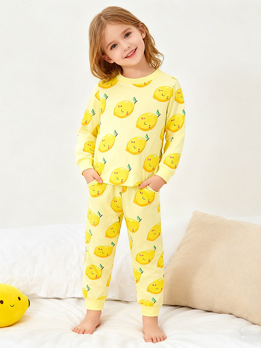 Sweet Lemon Yellow Print Pajama Set for Girls 2-9 Years