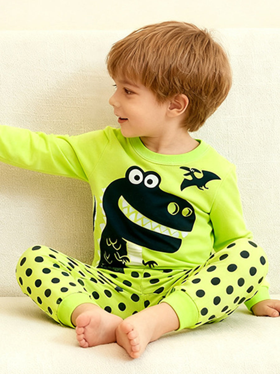 Goofy Dino Lime Green & Polka Dot Pajama Set for Girls & Boys 2-9 Years